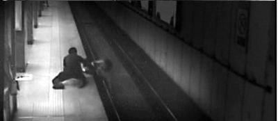 去年8月22日晚上9点多钟,在地铁2号线和平门站,一名男子昏迷在轨道上,由于左臂碰到了电源,不断有火花飞出。与此同时,一列列车即将进站。紧急关头,一名男子跳下站台,冲着司机奋力挥手。最终,倒在铁轨上的男子被地铁员工救出送到了医院。
