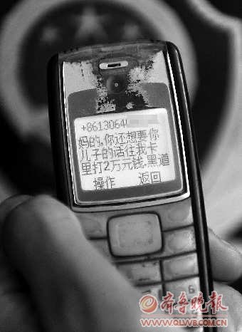 孩子发到父亲手机上的敲诈短信。