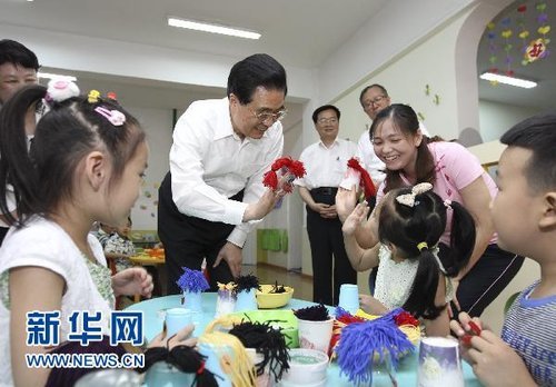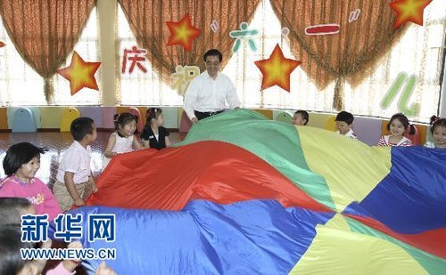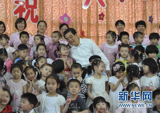新华网湖北十堰5月31日电(记者邹声文 张宗堂)“六一”国际儿童节来临之际,正在湖北省考察工作的中共中央总书记、国家主席、中央军委主席胡锦涛,5月31日来到十堰市柳林幼儿园,亲切看望小朋友和幼儿教师,代表党中央,向全国各族少年儿童表示节日的祝贺,向广大少年儿童工作者表示诚挚的慰问。