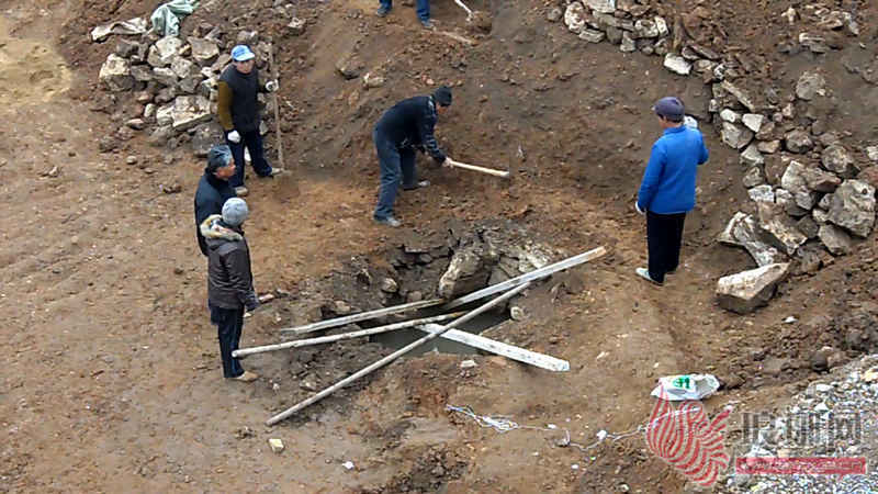 目击:楼基挖到4米深 推开大石板发现井