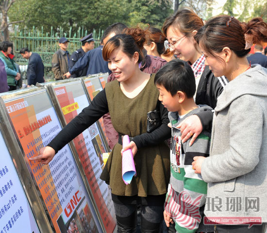 图1:4月7日,在兰山区兰山街道曹家王庄社区,居民在观看宣传图板,了解食品安全常识。