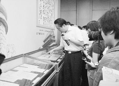 中国共产党成立初期的档案、毛泽东等重要国家领导人的手稿、1945年周恩来和彭德怀出席中国共产党第七次全国代表大会时的代表证、1949年10月1日由毛泽东主席亲自签署的中华人民共和国中央人民政府的第一份公告、朝鲜停战协议、第一个五年计划……这些档案的价值不言而喻,在展柜前,记者们把介绍这些文献档案的国家档案局副局长、中央档案馆副馆长李明华围得水泄不通。