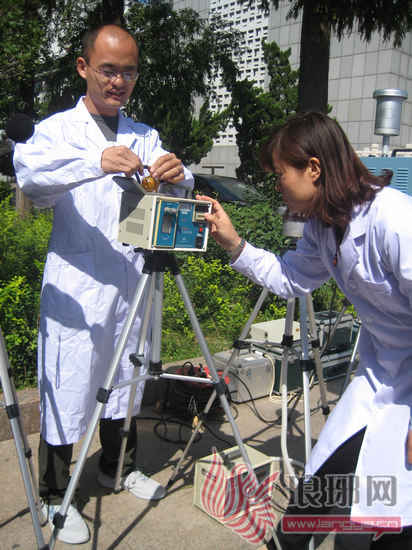 市环保局环境监测站工程师正在进行大气监测.
