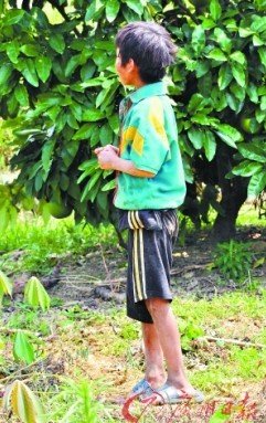 昨日是“六一”国际儿童节,在地处大山深处的梅县松口镇富坑村绵延的梯田中间,11岁的孩子涂华军穿着厚厚的冬衣,顶着正午炎炎烈日赤脚在山道上漫无边际地奔跑。