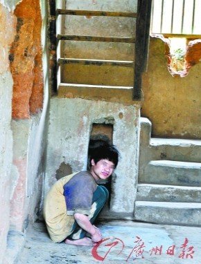 2007年,老二涂峰军 (今年15岁)也发疯了,经常打砸家当,一个人傻笑。去年,老三涂华军(11岁)又像两个哥哥一样发了疯,整天赤脚在房前屋后山间田野游荡。