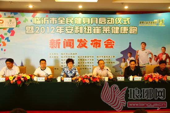 临沂市全民健身月启动仪式暨“安利纽崔莱健康跑”活动新闻发布会现场。