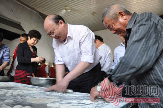 河东区委书记、区人大常委会主任王晓军同老人一起包水饺。