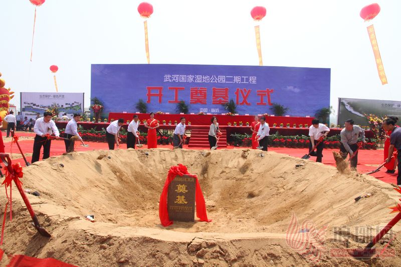 罗庄武河湿地公园二期工程项目开工奠基。