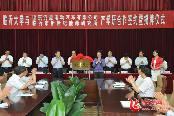 仪式上,临沂大学与沂星电动车有限公司、新能源技术研究所、临沂新华印刷物流集团分别签订产学研合作协议。“临沂大学-临沂市新世纪能源研究所科技创新基地”、“临沂大学博士工作站”、“山东沂星电动汽车有限公司人才培养基地”同时落户临沂大学。