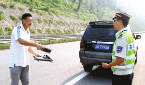 1日下午3时许,包茂高速公路重庆武隆白马段往主城方向。十二大队执法队员梁尚松和罗东巡逻时发现,前一辆黄海牌越野车在行车道和超车道间左冲右突走S型,仿佛在躲避什么,不少车辆紧急避让。