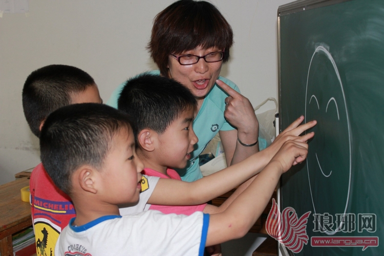从记者口中得知8日是世界微笑日时,王胜艳拿起抹布擦掉了刚刚画完的图案,在黑板上画上了一个大大的笑脸,然后一字一句地教孩子们认识什么是笑脸。在王胜艳的带领下,孩子们向记者绽放了他们花朵般的笑脸。