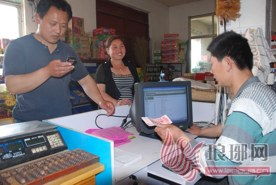 6日,在莒南洙边镇后净埠村一间普通农资超市外,前来办理缴费充值业务的村民络绎不绝,店主丁仕军在一台电脑前点击几下鼠标,村民要办的各项业务便轻松搞定。