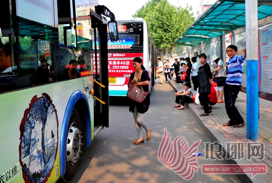 9日,市民在金雀山路东段乘坐公交车。 记者 罗志强 摄