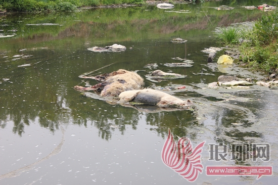 “河里那几头猪泡了有一个多月了,特别臭,太阳一晒苍蝇都爬上去了,在附近干活的都被熏得受不了。这个村养猪的少,都是上游的几个村扔的,去年还不这样。”陈先生说,谁都不希望好好的河水被污染,所以村民们见到有漂下来的猪,就给拉上岸埋掉。不过随着河里的死猪越来越多,加之不少死猪由于天热腐烂了,村民们觉得太脏太累,就不愿意埋了。“这河水流经三四十个村庄,住着好几千人,要是出了问题,后果很难想象。”陈先生担忧地说。
