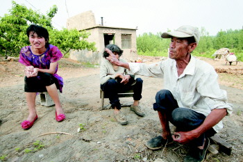 5月10日下午,在蒙阴县界牌镇海子崖村一处小果园里,记者见到了村民传说中的“妇科哥”刘长山和他年迈的父母。