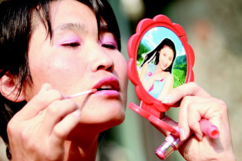 ◥刘长山每天都要涂口红化妆。