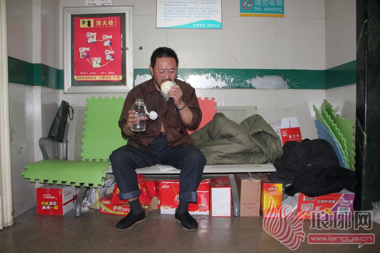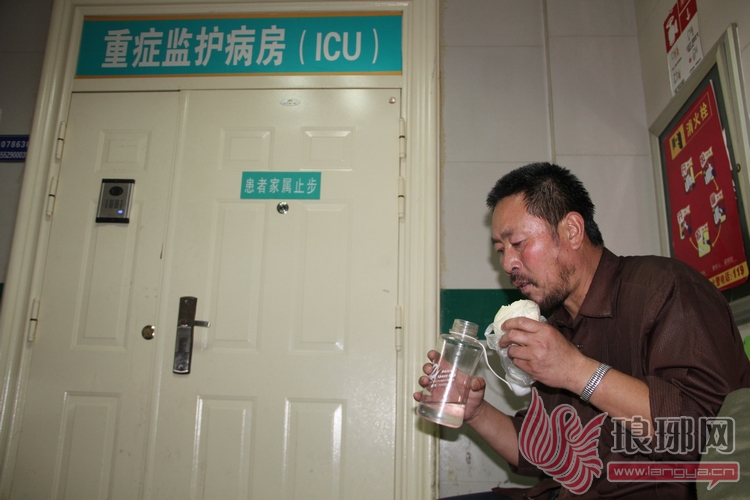 中午,老李就靠白水、馒头充饥。每天他都坐在病房门口,等待着儿子好转的消息。