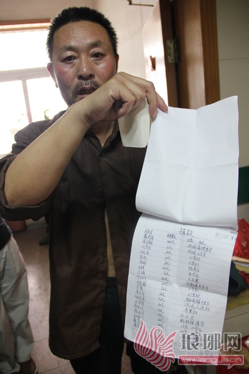 老李详细记下了接受过的每一笔捐助。