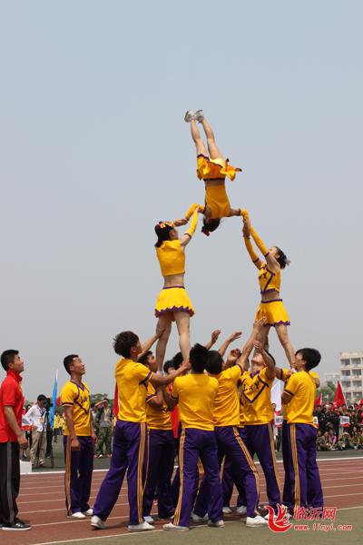 临沂网讯 5月19日上午11时,“盛世相约,青春中国” 第一届全国大学生传统运动会圆满完成各项赛事,胜利闭幕。在闭幕式前,刚刚从美国奥兰多2012年世界啦啦操锦标赛载誉归来的临沂大学体育学院大学生技巧啦啦队为大家表演了精彩的技巧啦啦操,赢得了现场领导、嘉宾和师生的热烈喝彩。