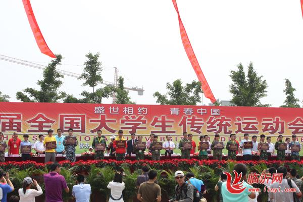 闭幕式上,总裁判长、北京科技大学体育部主任吴铁桥教授宣读了比赛成绩,临沂大学、陇东学院、太原理工大学、齐鲁师范学院、绵阳师范学院、聊城大学、阜阳学院、济南大学分获团体总分前八名;李老民宣读了第一届全国大学生传统运动会“体育道德风尚奖”、“优秀组织奖”和“特别贡献奖获奖名单,中央财经大学等17所高校获本届运动会“优秀组织奖”,北京理工大学等39所高校获“道德风尚奖”,临沂大学获“特别贡献奖”。
