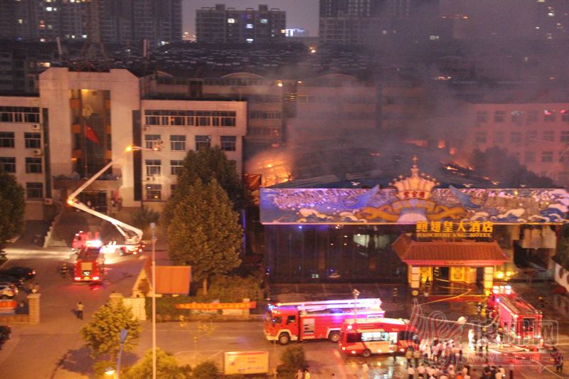 记者从现场了解到,酒店起火时间大约是下午6时50分,几分钟后,酒店冒出的滚滚浓烟就高达二三十米。“当时我正从旁边经过,突然看到酒店里冒起浓烟,房顶上还有火苗舔着屋顶。接着就看到酒店里跑出来很多员工,远远地躲在一旁,听说是酒店里的燃气发生了泄漏,导致起火的。”市民刘先生告诉记者。