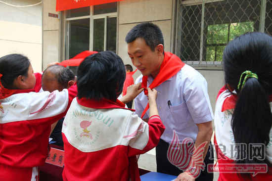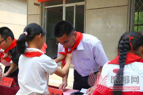 少先队员为泰康人寿临沂中心支公司张振彬总经理系红领巾.