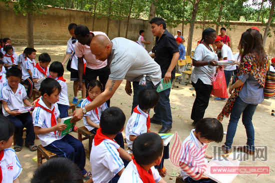 “他们(外教)都非常喜欢来和孩子们交流。”骏予学屋的杜广老师,当他们知道三峪联小的情况后,一直十分关注这些孩子的情况,得知今天有爱心企业来为孩子捐赠课桌椅,杜老师组织自己学屋的孩子和外教老师一起,带着课外书,赠送给这里的孩子,同时让外教们和一起互动,给孩子们上一堂纯正的英语口语课。