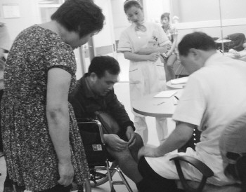 唐宜万说,当天下午,他腿疼得越来越严重,到了晚上7点多,疼痛愈加严重让他无法再继续忍受。“痛风病就像牙痛病一样,突然疼起来非常难受。”唐宜万说,这时想到了留下电话号码的杨世雪,并拨通了杨世雪的电话,希望杨世雪可以帮他找人,陪他一起去医院。