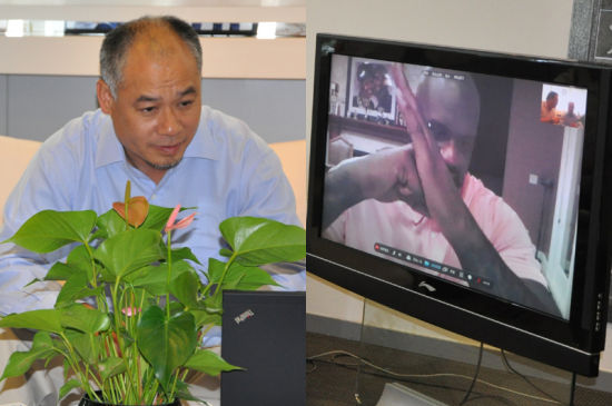 在会议室里,李宁先生穿着蓝色的衬衣、米色的裤子,黑色的皮鞋,耐心地坐在沙发上等候与奥尼尔通话,而视频刚刚接通,看到屏幕上穿着粉色Polo衫的奥尼尔,李宁先生就像是见到了一位久违的朋友,马上熟络地跟奥尼尔打起了招呼。