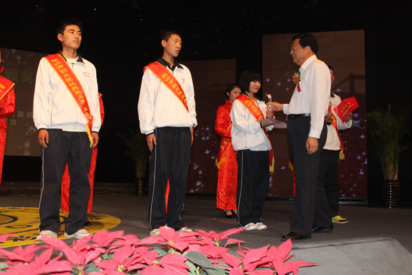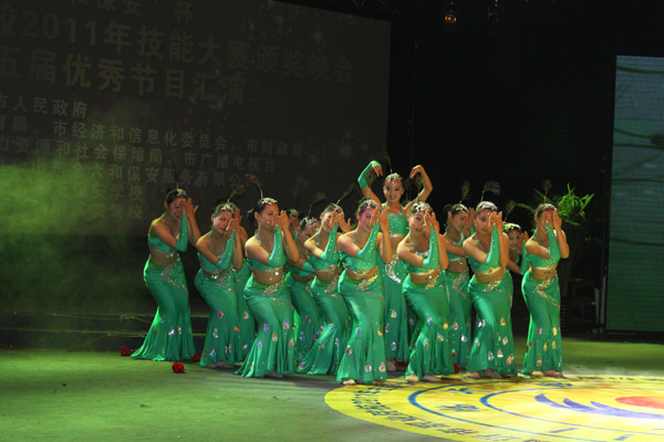 6月3日下午,临沂市职业院校2011年技能大赛颁奖晚会暨第五届优秀文艺汇演取得圆满成功。到场的各位领导为获奖单位和个人颁发了团体奖、组织奖、特殊贡献奖等奖项。现场歌舞、魔术等表演精彩万分,赢得观众阵阵掌声。