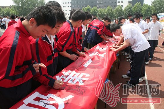 学生们承诺签名。