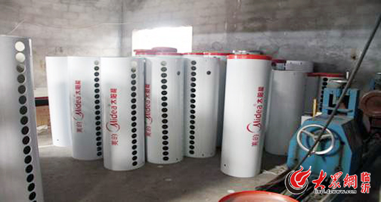 5月23日上午,芝麻墩派出所民警在下乡走访的时候,偶然发现某村一个简易厂房内,三五个工人正热火朝天的生产太阳能热水桶。仔细一看,寻访民警大吃一惊,见已加工好的太阳能桶外壳上,赫然贴着“海尔”、“美的”、“格力”等知名品牌商标。