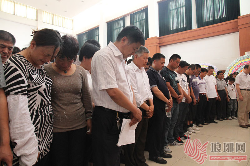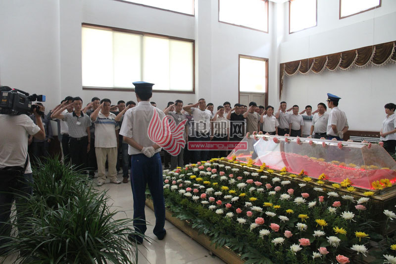 临沂市交通局、出租公司领导向李学国遗体鞠躬。