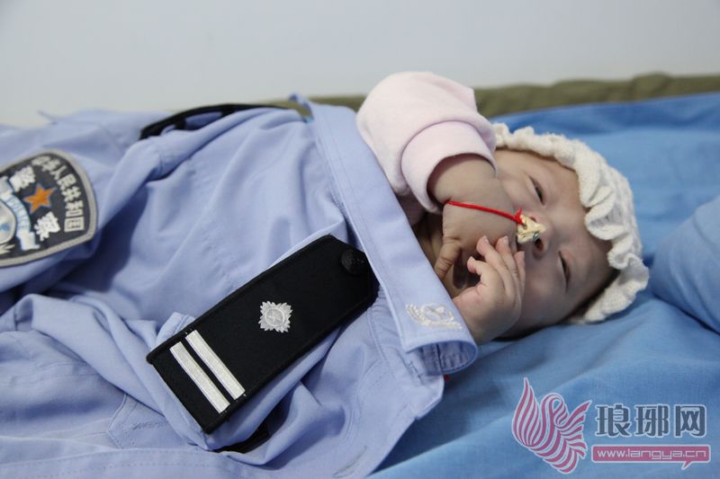 被爸妈丢弃的孩子在民警的照料下熟睡。