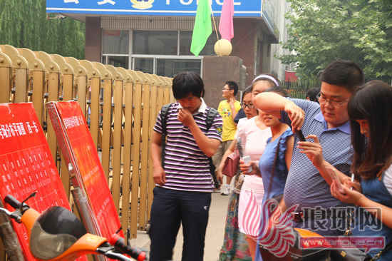 考生和家长在记录考试信息。