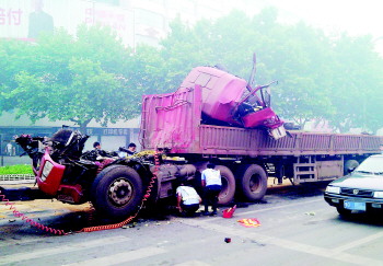 据附近早餐点老板介绍,早上4时20分许,她正忙着店里的早餐,突然听到“轰”地一声巨响,抬头一看,两辆大货车发生了追尾。“当时,撞击的声响非常刺耳,我还以为发生地震了呢,后来抬头向路口一看,才知道发生了车祸。”早餐点老板告诉记者,虽然后面的货车驾驶室受损严重,但货车司机基本未受伤,后来自己从驾驶室里爬出来的。