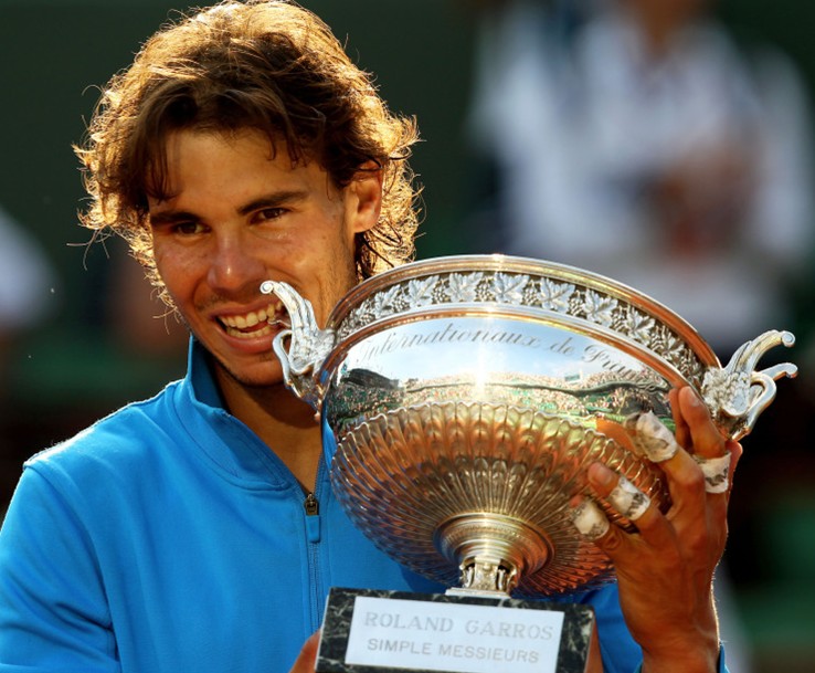 新浪体育讯 北京时间6月6日(巴黎当地时间5日)消息,在本年度法国网球公开赛落幕日男单决赛的压轴大战中,被誉为“历史上红土第一人”的西班牙天王纳达尔在双方总第25次的巅峰对决中以总比分7-5/7-6(3)/5-7/6-1,第17次击败瑞士天王费德勒,继2005-2008以及2010年之后生活第6次捧起火枪手杯,追平了瑞典先辈比约-博格此前所保持的夺冠纪录,而这亦是他所收获的第10座大满贯赛冠军。与此同时,纳达尔凭借卫冕成功守住了被塞尔维亚人德约科维奇觊觎多时的世界第一宝座。