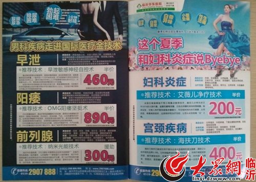 近日,一位名为“南极人”的网友在大众网临沂论坛上发表了一篇名为《没人管吗?华东医院街头派发色情杂志 内容睁不开眼 真心伤不起》的帖子。帖子中称,临沂华东医院当街发放涉黄刊物,不仅影响市容市貌,“杂志”内容大肆宣传医院特色疗法蛊惑患者就医,并且有些文章涉黄露骨,危害青少年的身心健康。