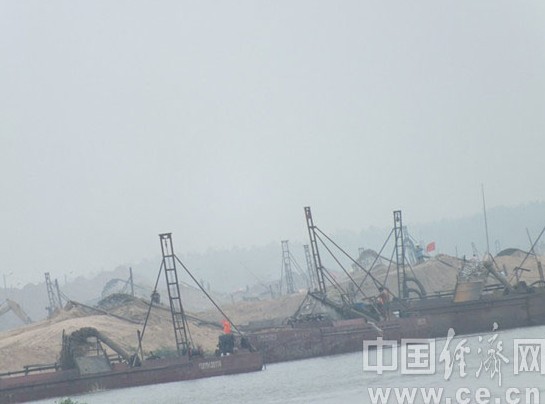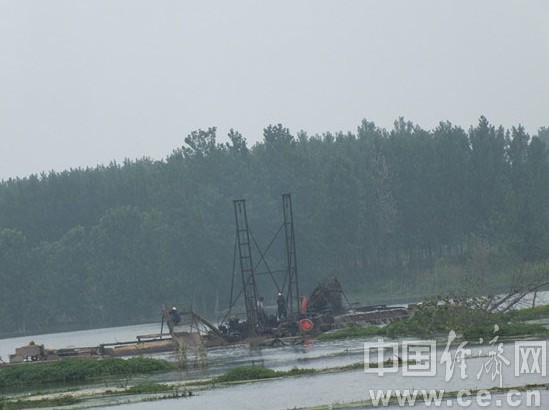 每天都有众多采沙船在武河湿地公园非法采沙