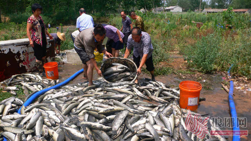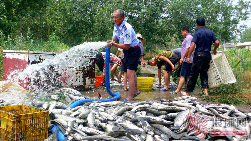 当日上午,记者来到临沭县石门镇白毛村。在村民刘堂甫承包的鱼塘前,空气中弥漫着鱼腥味,大量的苍蝇在空中乱飞。记者看到,占地一亩多的鱼塘里的水已经基本被排空,十几位村民正不停地帮忙打捞死鱼。打捞上来的死鱼被集中放在岸边,一名村民正用清水对浑身泥垢的死鱼进行冲刷。一位村民告诉记者,这些死鱼全部为黑鱼,个头不小,大都在2斤以上。