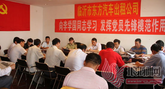 7日上午,为了深入学习李学国同志的先进事迹,大力弘扬李学国同志的崇高精神,临沂市东方汽车出租公司在市交通部门的号召下组织全公司优秀共产党员、先进工作者掀起学习李学国先进事迹的热潮。