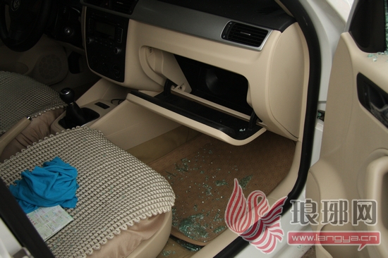 而停放在东侧的BORA车车主赵先生则没那么“幸运”。赵先生的车不仅车窗被砸碎,副驾驶前的储物箱也被撬开,赵先生放在储物箱的导航仪器被偷走。