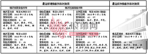 临沂暑运新增和延伸旅客列车时刻表(点击见高清图表)