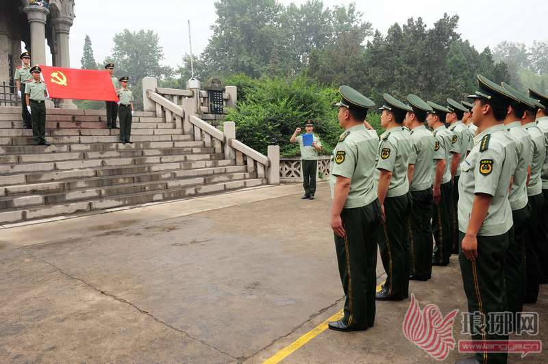 为纪念中国共产党成立91周年,6月29日下午,武警临沂支队组织百余名党员到华东革命烈士陵园面对党旗庄严宣誓,表示坚决忠于党、忠于人民、忠于祖国,永远做党和人民的忠诚卫士,用自己的实际行动保卫十八大。