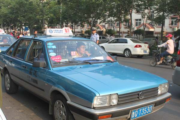 临沂市富达出租车公司的出租车司机们早上7点出发,考生只要凭准考证就可以乘坐高考直通车,为考生的顺利出行无偿服务。