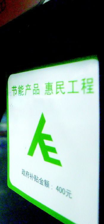 记者还注意到,部分节能家电标识已经到位,该标识除了节能惠民“人”字型标志外,还标明了补贴金额,卖场工作人员表示,所有节能家电标识将会贴在产品外包装上,方便消费者识别。