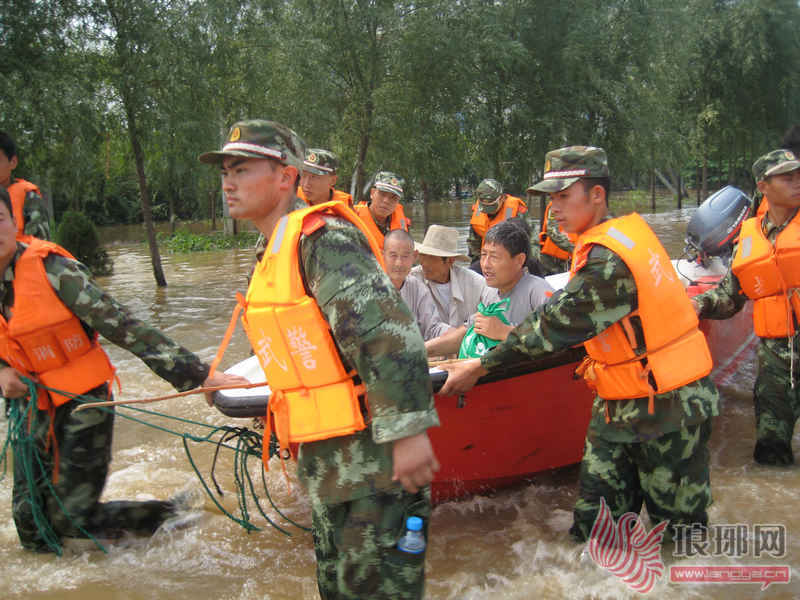 上午9时许,武警临沂支队一中队队长赵永飞带着武警战士在赶往解救被洪流冲跑的采砂船的途中,突然又接到市防汛抗旱指挥部的新通知,火速赶往临沂工业园区解救数百位受困群众。10时许,武警官兵赶到现场,开始利用冲锋舟深入水区解救群众。