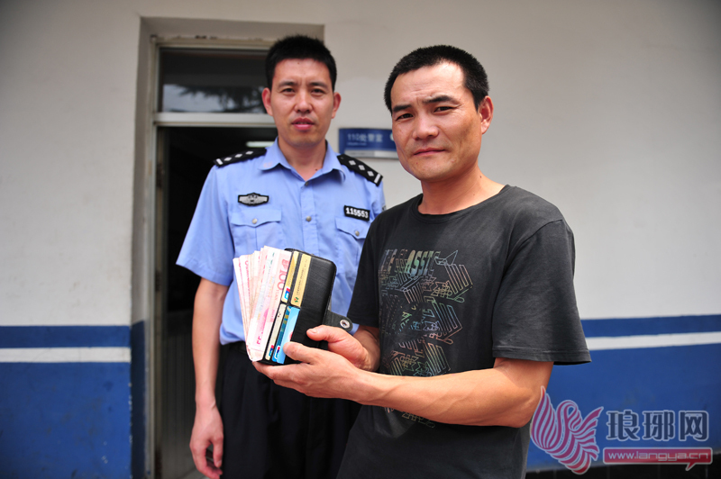 7月11日下午4点多钟,来自陕西前来临沂看望打工儿子的的外地居民周某夫妇步行走到罗庄农业银行附近人行道时,在路边发现了一个装有现金和银行卡的黑色钱包,夫妇二人没做太多的考虑,随即将钱包交给了正在附近银行门口执勤的保安,请他们帮助寻找失主。两位执勤的保安马上拨打了110报警电话,110民警赶到现场后,会同在场人员一起对钱包内的财物进行了清点,发现包内共装有1800多元的现金,另外还有各类票据和银行卡、医保卡等物品。在现场寻找失主未果的情况下,民警将钱包带回派出所,并立即根据医保卡上的线索通过公安信息网查询失主的相关信息。经过细致查找,民警发现钱包的主人系郯城县李庄镇居民刘某。