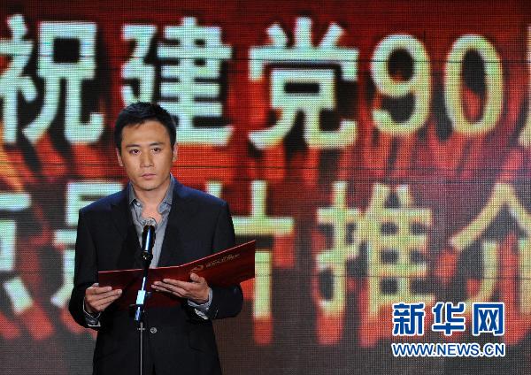 6月7日,电影《建党伟业》主演刘烨出席推介典礼。当日,“在党的旗帜下——庆祝建党90周年重点影片推介典礼”在北京举行。数十条城市院线,数千块电影银幕,数万支农村放映队,将在接下来的近2个月中,重点放映《建党伟业》、《秋之白华》等28部影片,向中国共产党的90华诞献礼。新华社记者 金良快 摄