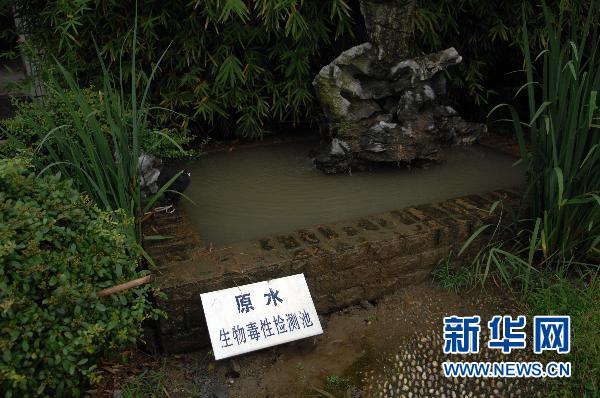 6月7日拍摄的杭州市九溪自来水厂取水口的生物毒性检测池。如发现所养鱼类异常,工厂将第一时间暂停取水。新华社记者 黄宗治 摄